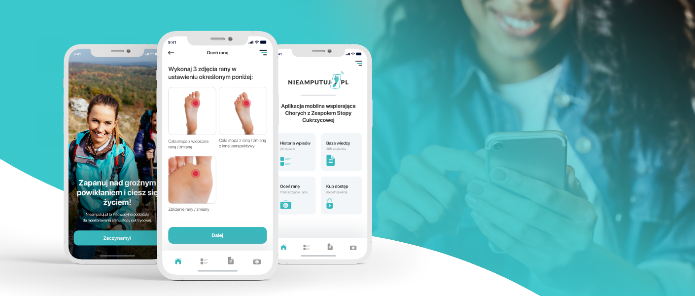 Nasza aplikacja Nieamputuj.pl po przeanalizowaniu zdjęć wysłanych przez Użytkowników będzie przekazywać informacje na temat zmian na stopie oraz edukować o działaniach, które przy tego typu zmianach się podejmuje.